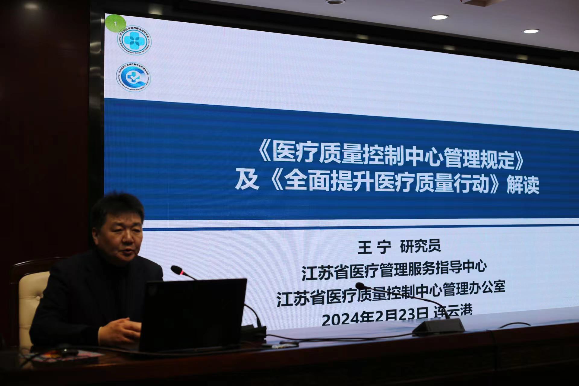 会议首先由江苏省医疗管理服务指导中心研究员王宁教授进行培训,对《医疗质量控制中心管理规定》及《全面提升医疗质量行动》做了详细解读。